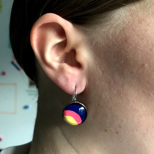 Boucles d'Oreilles Dormeuses Motif Abstrait Arc en Ciel