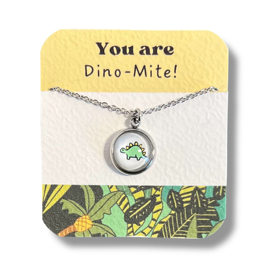 Collier Enfant Dinosaure Vert/ "You are Dino-mite! "
