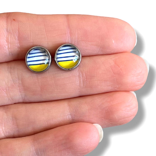 Puces d'Oreilles Enfant Rayures Bleues et Jaunes / Miss Bronzette!