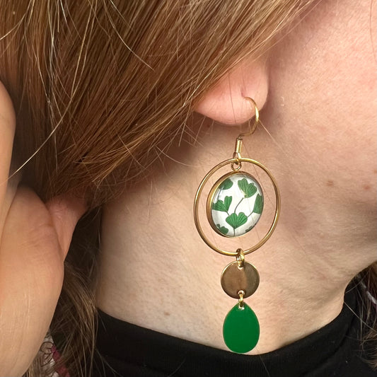Boucles d'oreilles asymétriques géométriques oranges et vertes