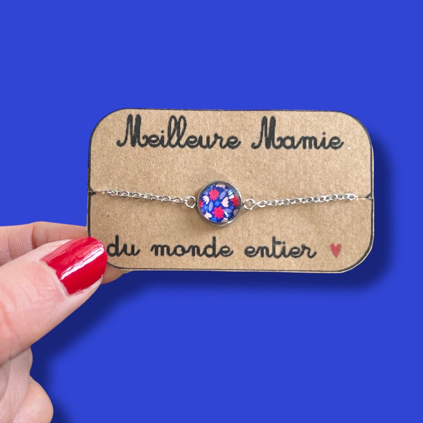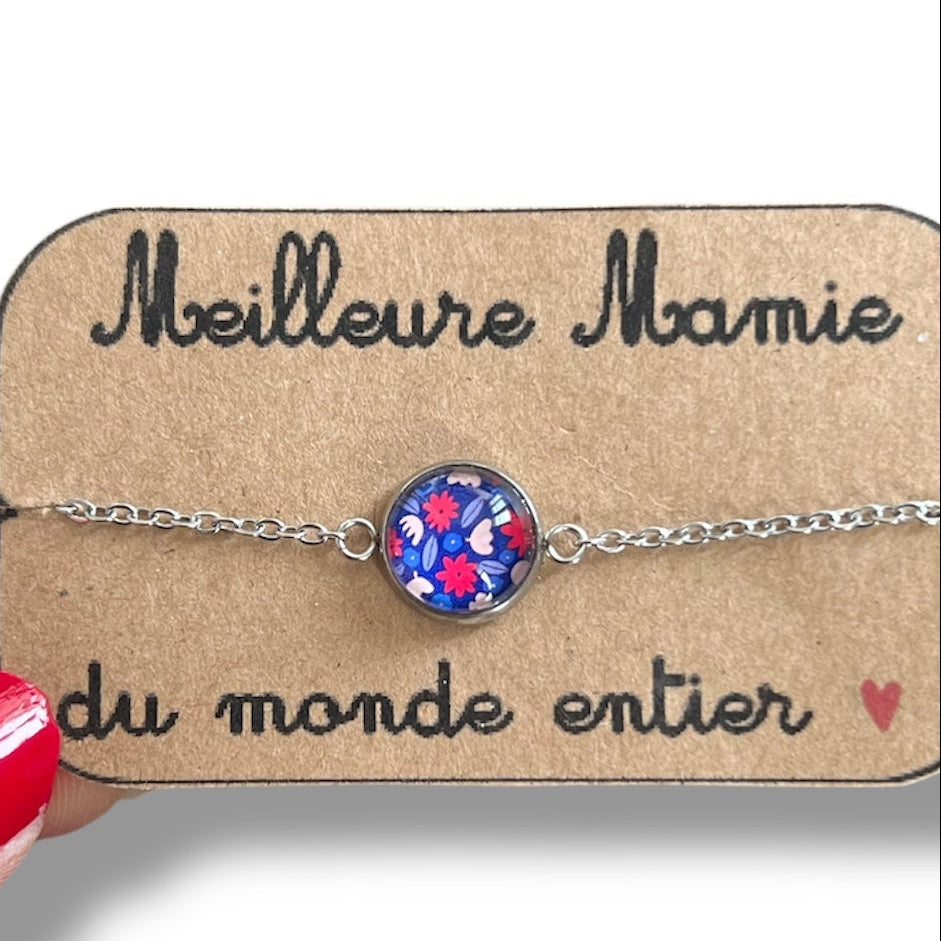 Red and blue floral bracelet, golden or silver finish