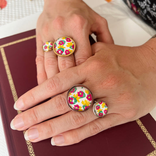 Pink and Yellow Floral Ring, Golden or Silver Finish