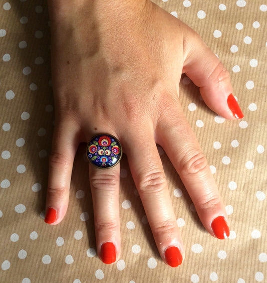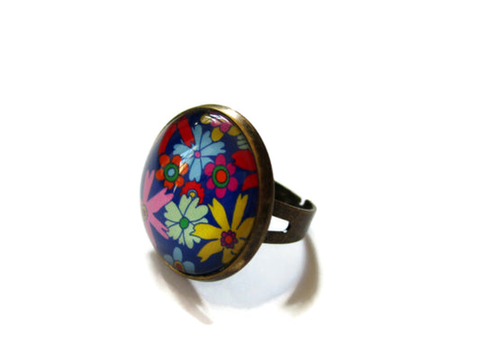 Blue and Colorful Floral Ring
