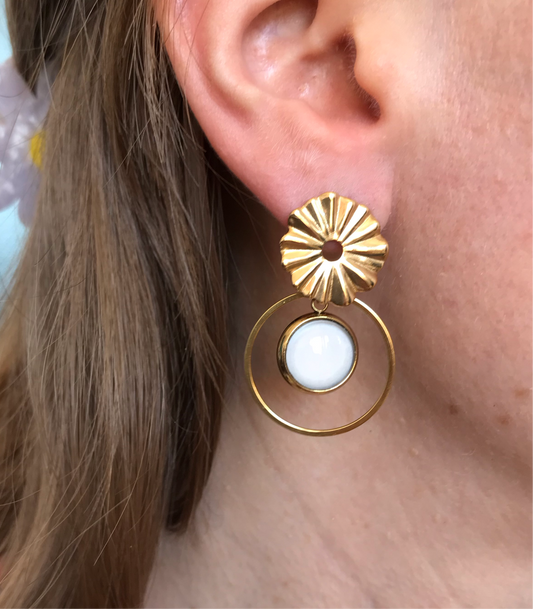 Colorful seventies Flower Hoop earrings, Golden or Silver Finish