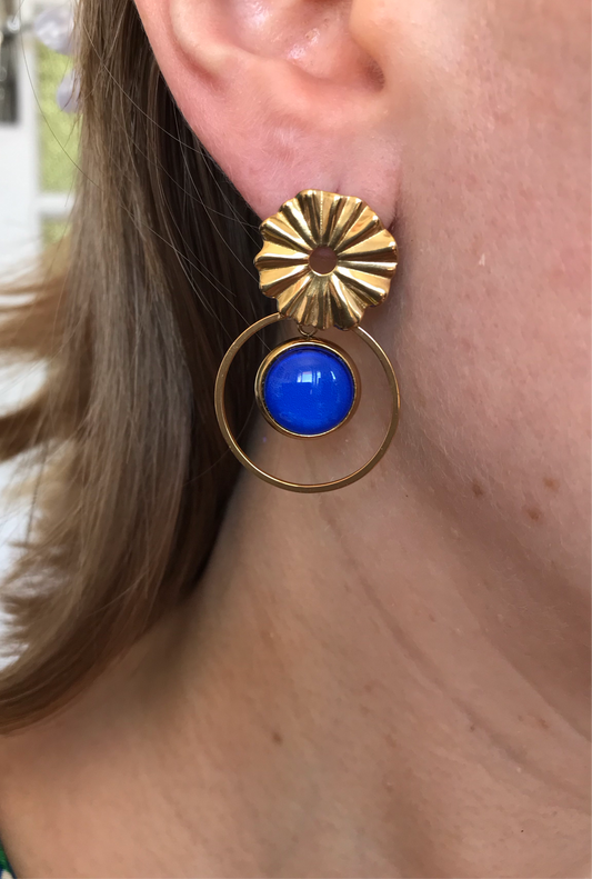 Electric blue golden HOOP EARRINGS, golden or silver finish