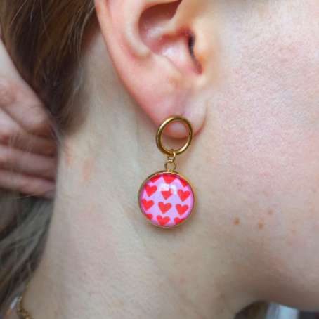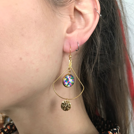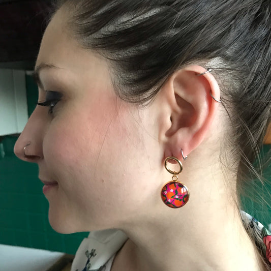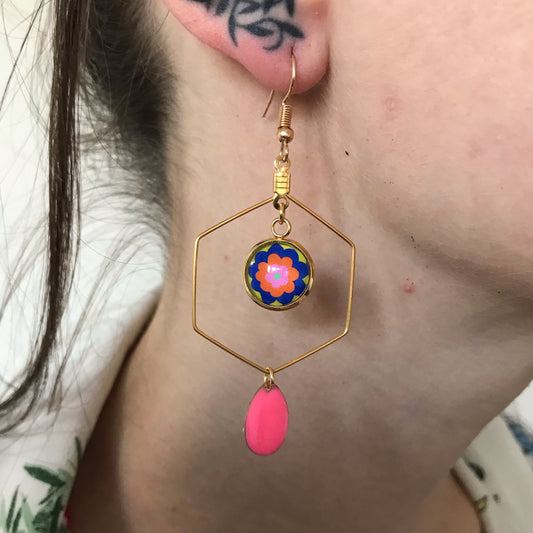 Orange and pink geometric Hoop earrings, golden or silver finish