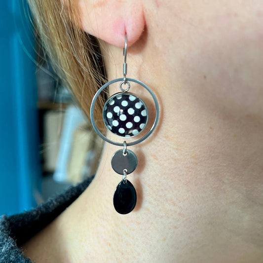 Black and White mandala Earrings, golden