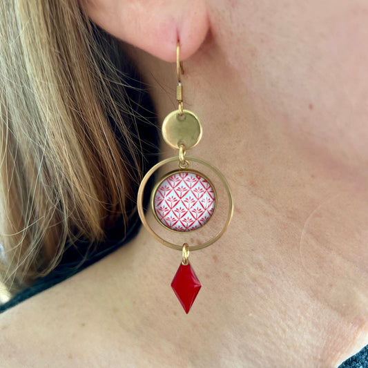 Turquoise and red mandala Dangle Earrings, Golden or Silver Finish