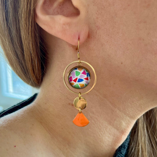 Terrazzo style mismatched Earrings , Golden or Silver Finish