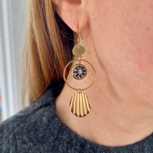 Black and White mandala Earrings, golden or silver finish