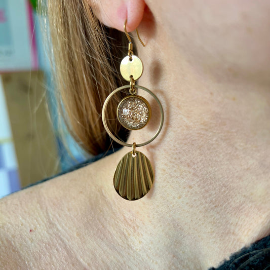 Golden glitter Earrings, golden finish
