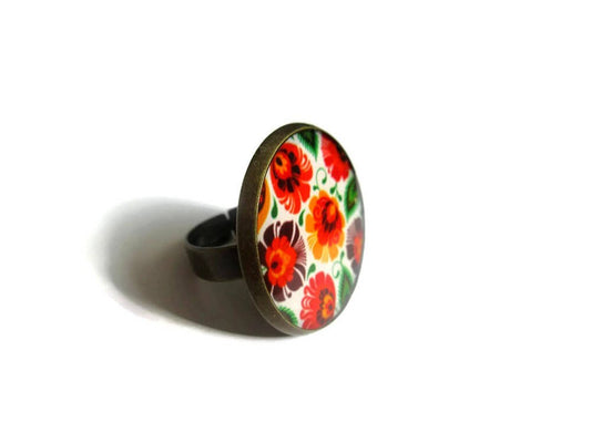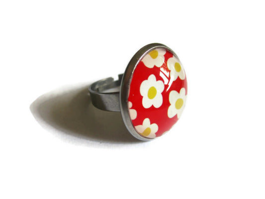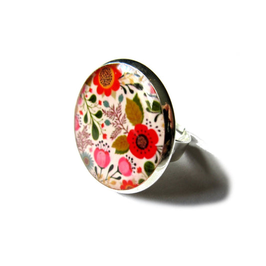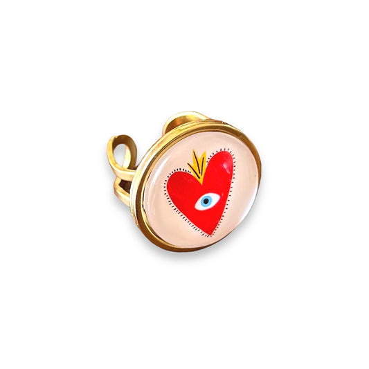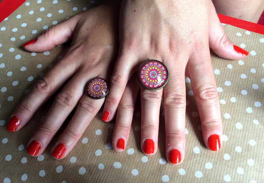 Pink and Red Hearts Ring, Golden or Silver Finish