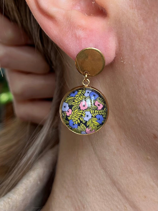 Pink, Purple and Green Floral earrings, golden or silver finish