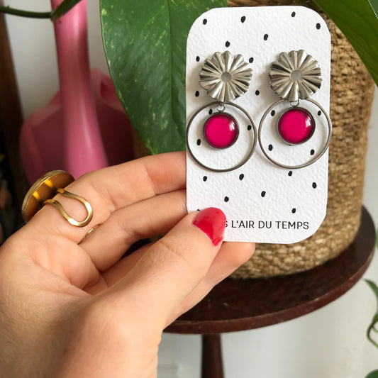 Fuchsia Pink Dangle Earrings, Golden or Silver Finish