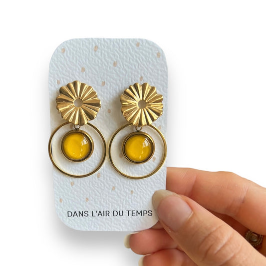 Yellow Boho Dangle Earrings, Golden or Silver Finish