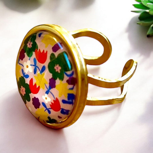 Colorful and yellow liberty Floral Ring, Golden or Silver Finish