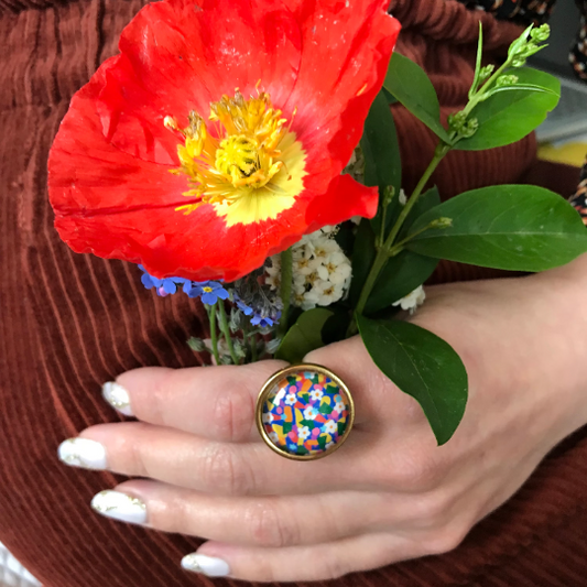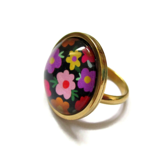 Colorful and Black Floral Ring, Golden or Silver Finish