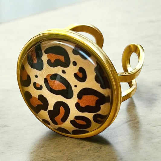 Minimalist leopard print bracelet, Golden or Silver Finish