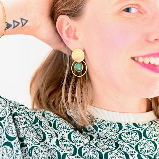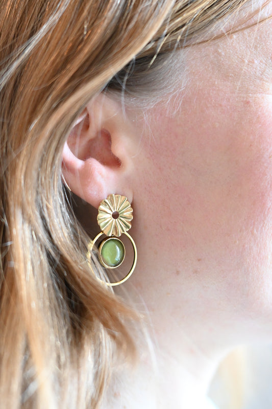 Mossy Green Boho Dangle Earrings, Golden or Silver Finish