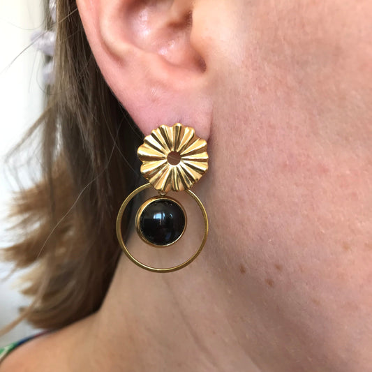 Black Boho Dangle Earrings, Golden or Silver Finish