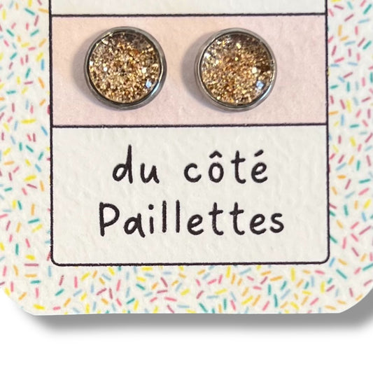 Gold Glitter Kids Stud Earrings