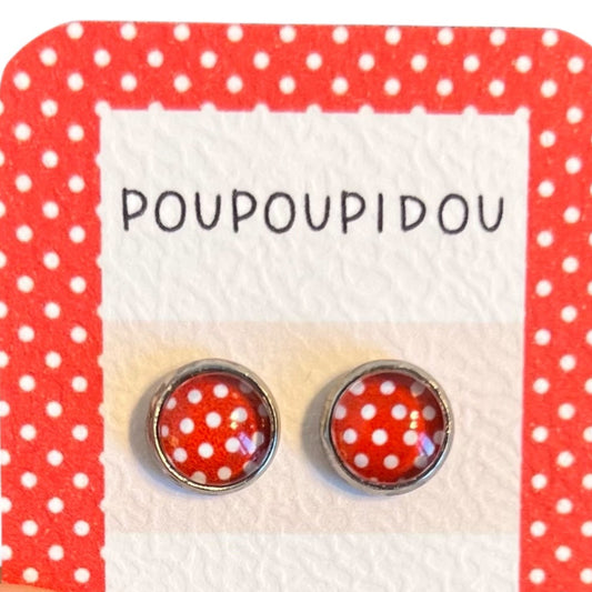 Red And White Polka Dot Kids Stud Earrings