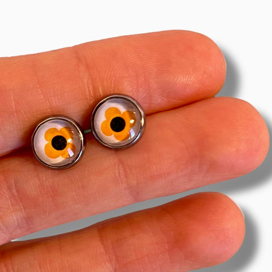 Orange an black Flowers KIDS EARRINGS