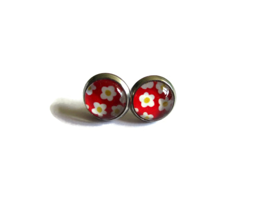 70's Red flowers stud earrings
