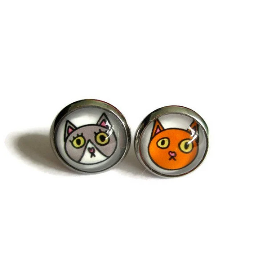 Red and Grey Cats stud earrings