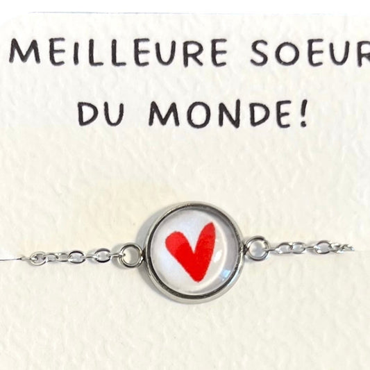 Red Heart Bracelet, Best Sister Bracelet, golden or silver finish