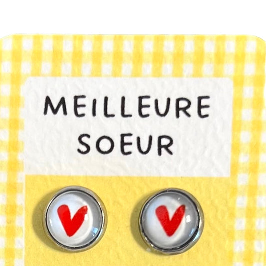 Kids Pink Heart Stud Earrings / Meilleure soeur du monde!