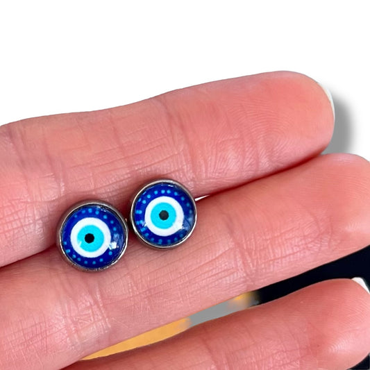 Blue evil eyes Kids Stud Earrings / "Good vibes only"