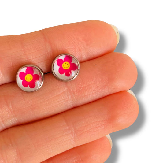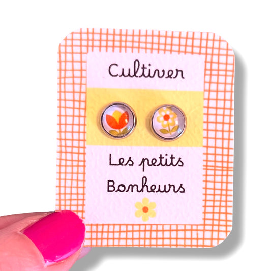 Orange And Yellow Floral Retro Kids Stud Earrings