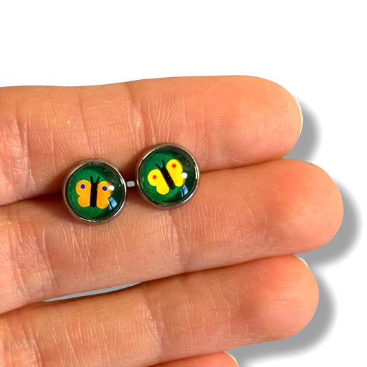 Orange And Yellow Butterfly Kids Stud Earrings / Minute papillon!