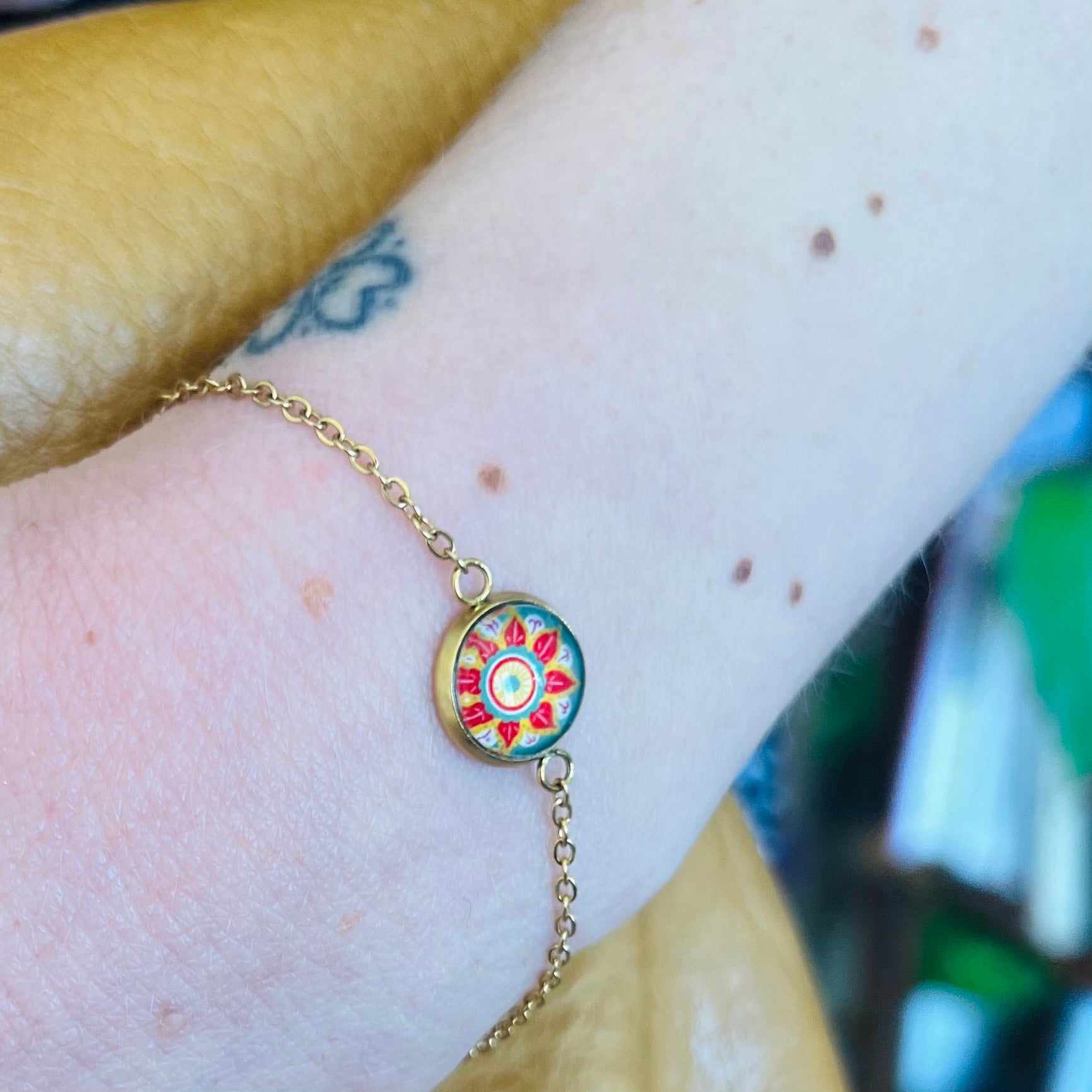 • High-quality picture is printed on waterproof paper and protected with a glass cabochon