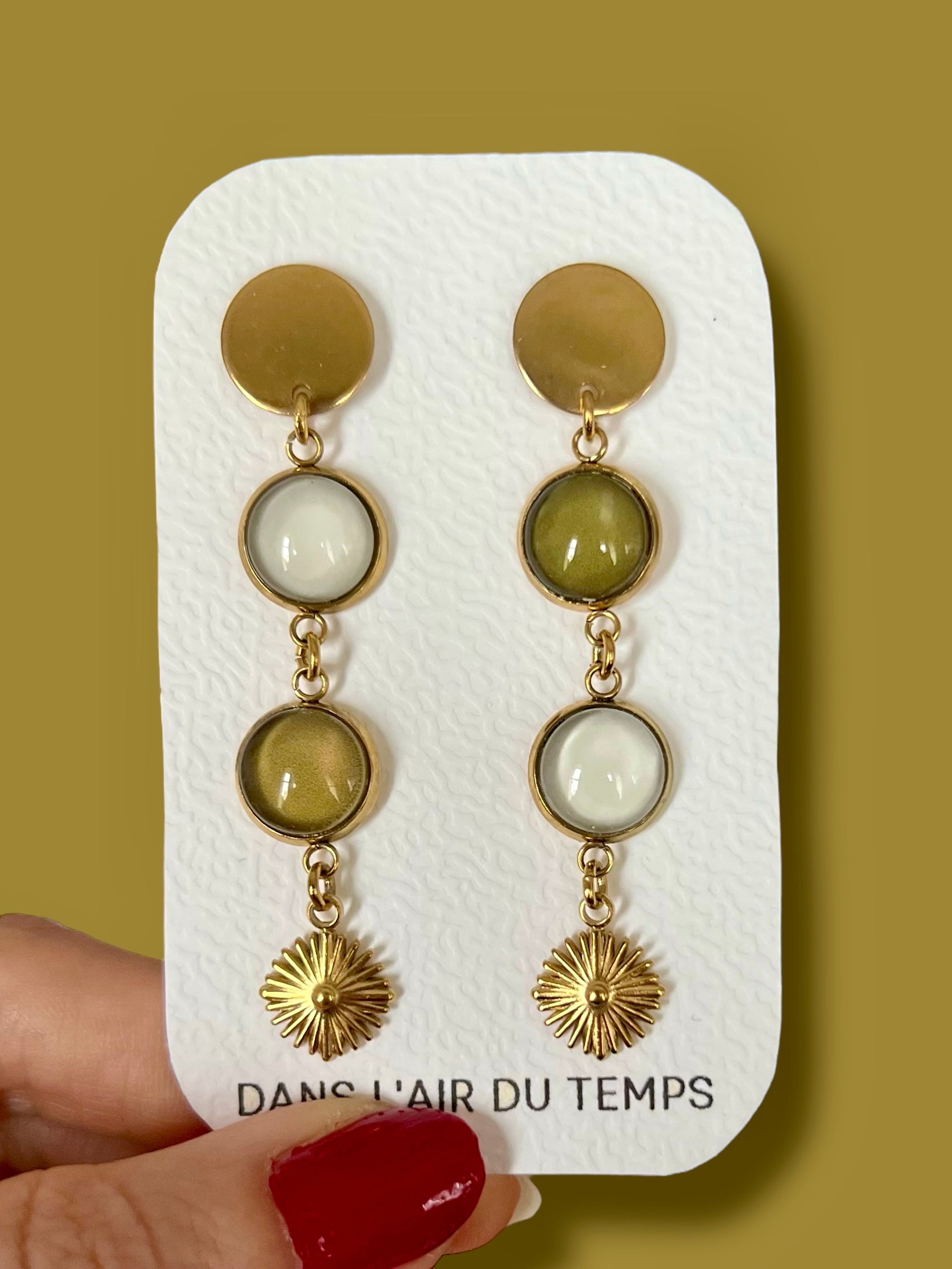 Boucles d'oreilles fines kaki et beiges