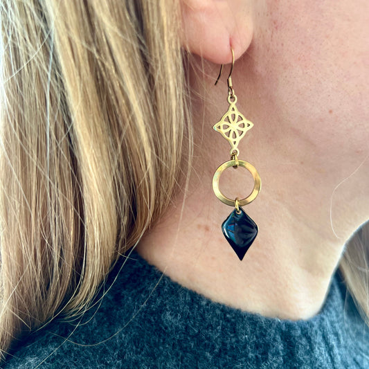 Boucles d'oreilles fines camel et bleu marine