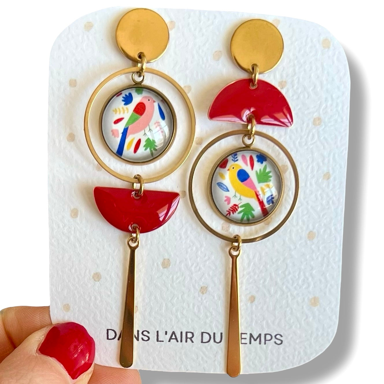Boucles d'oreilles pendantes oiseaux colorés ♥