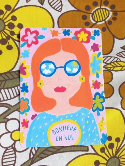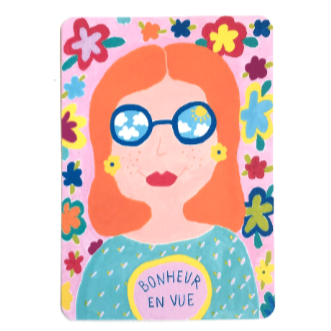S. J'ai adoré recevoir ma carte femme bonheur en vue. Les couleurs ,les dessins ,les petites fleurs , la touche d'humour j'aime tout.