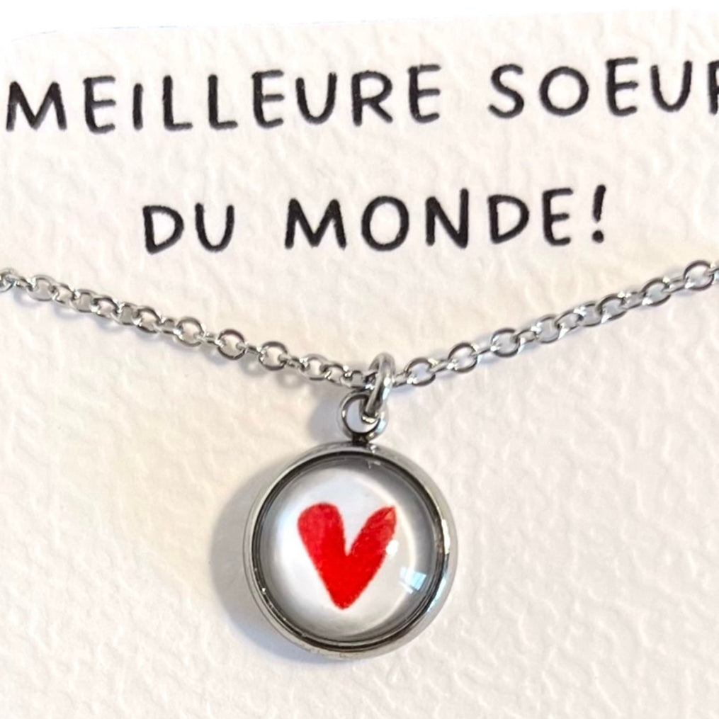 Collier Enfant Cœur rouge / Meilleure soeur du monde !