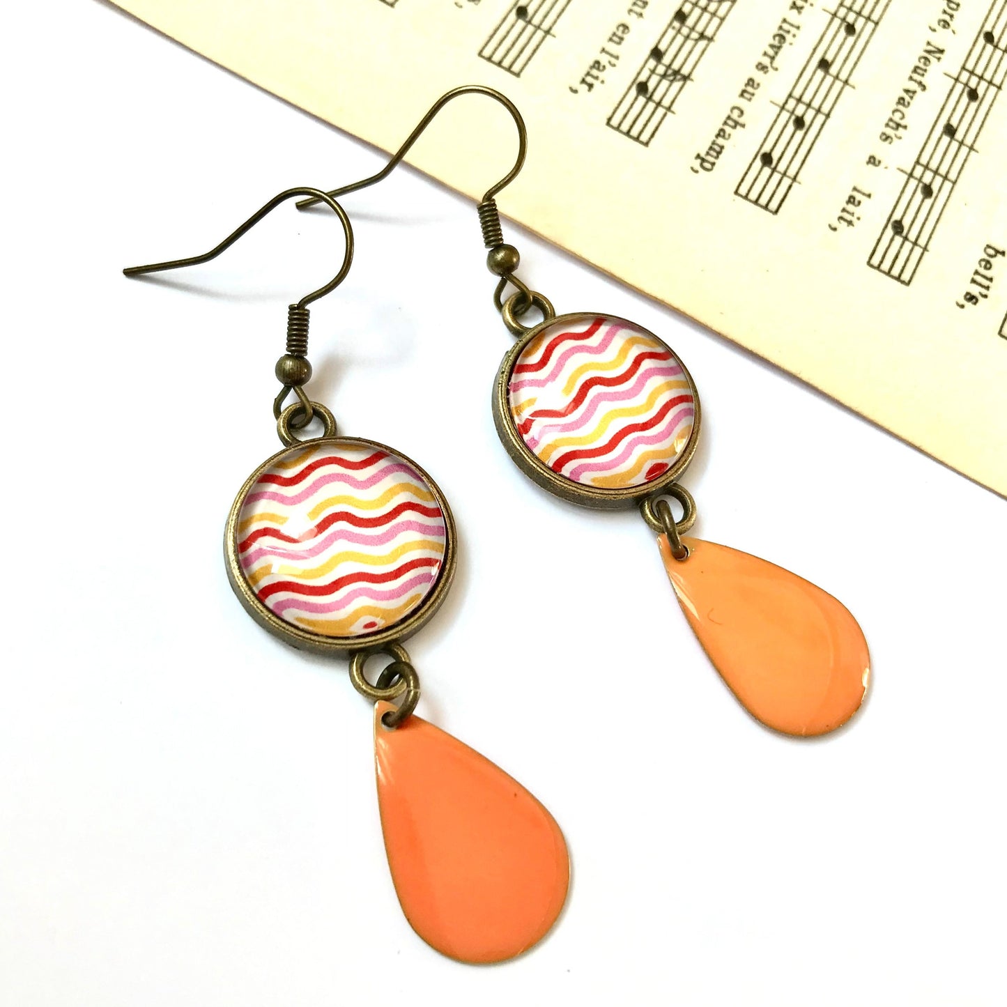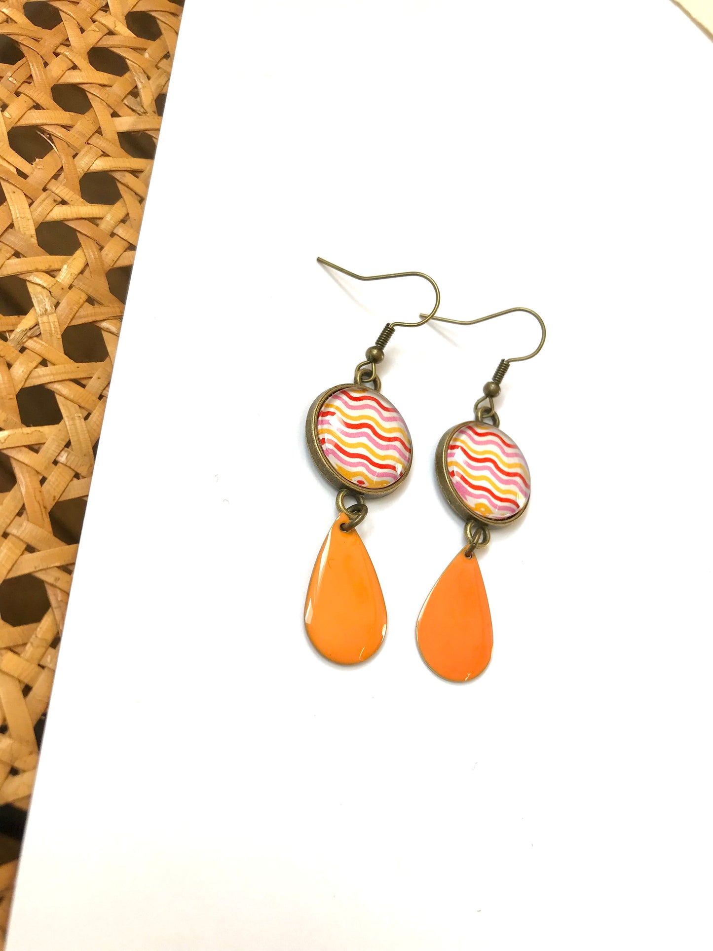 Boucles d'Oreilles Vagues Roses, Oranges et Rouges 70's