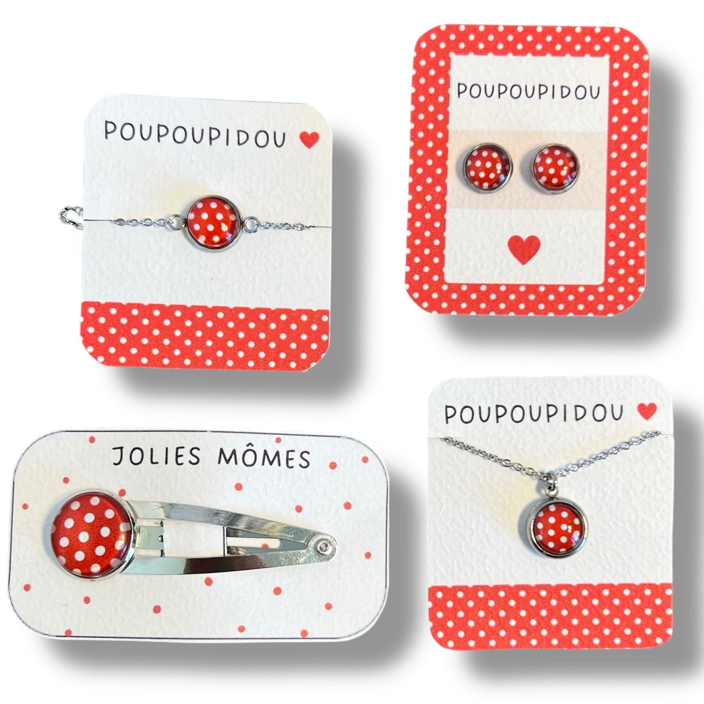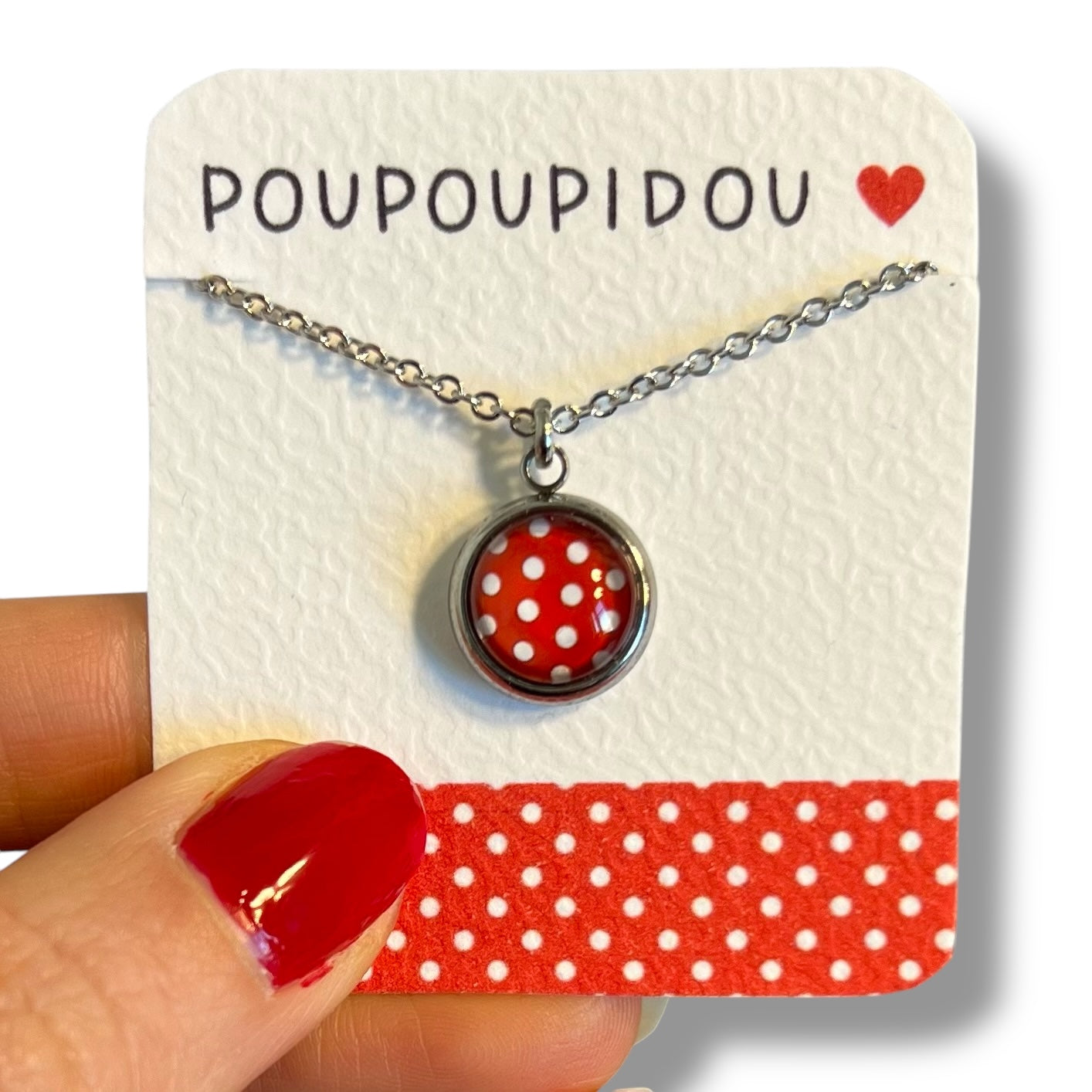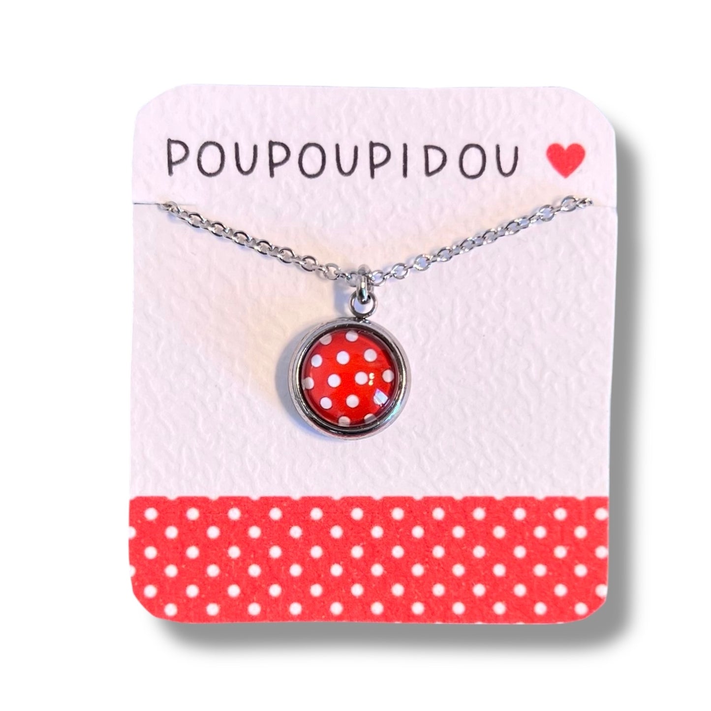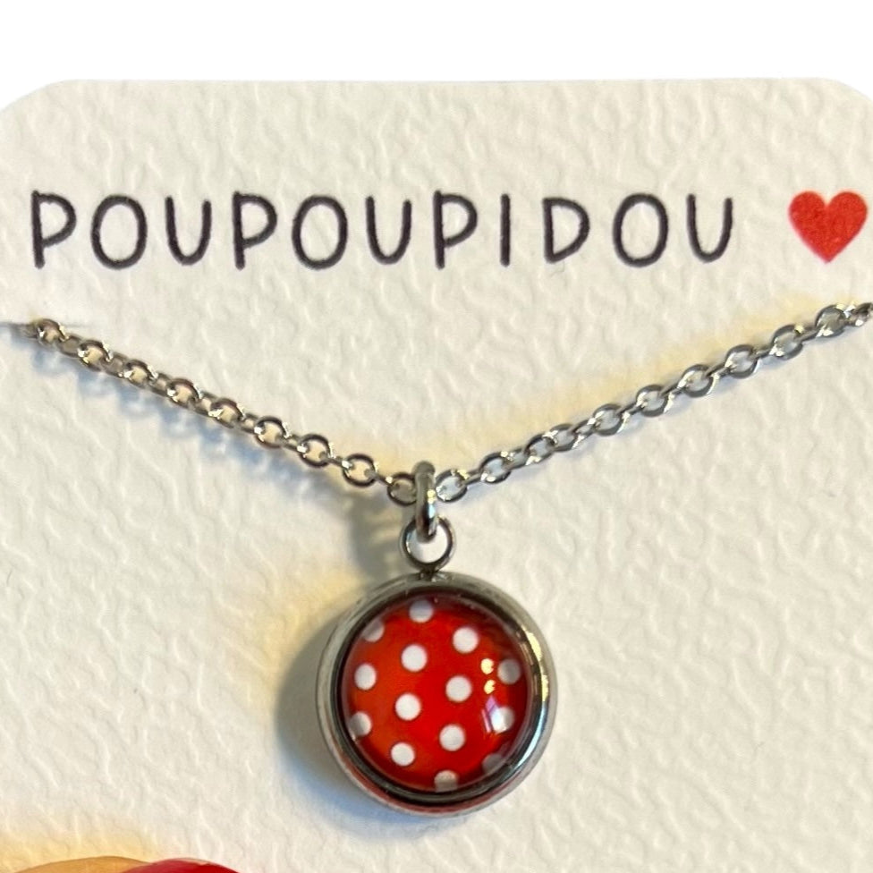 Collier Sautoir Cabochon enfant pois rouges et blancs ♥