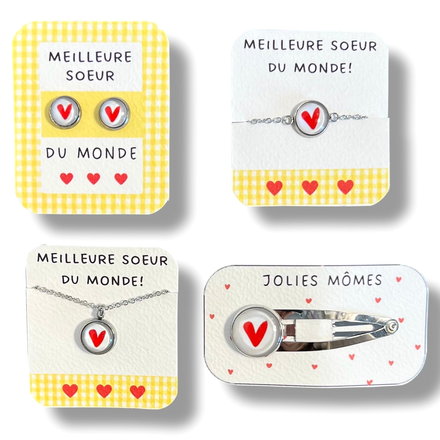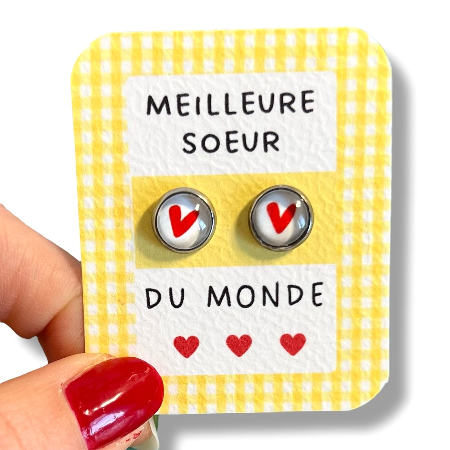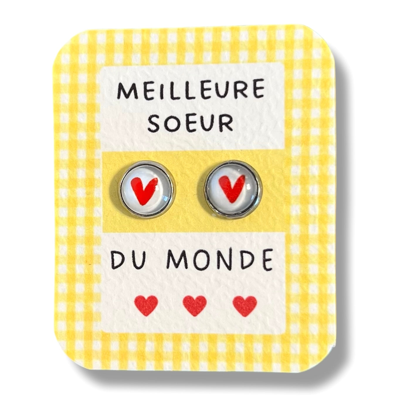 Puces d'Oreilles Enfant Coeur Rouge / Meilleure soeur du monde!