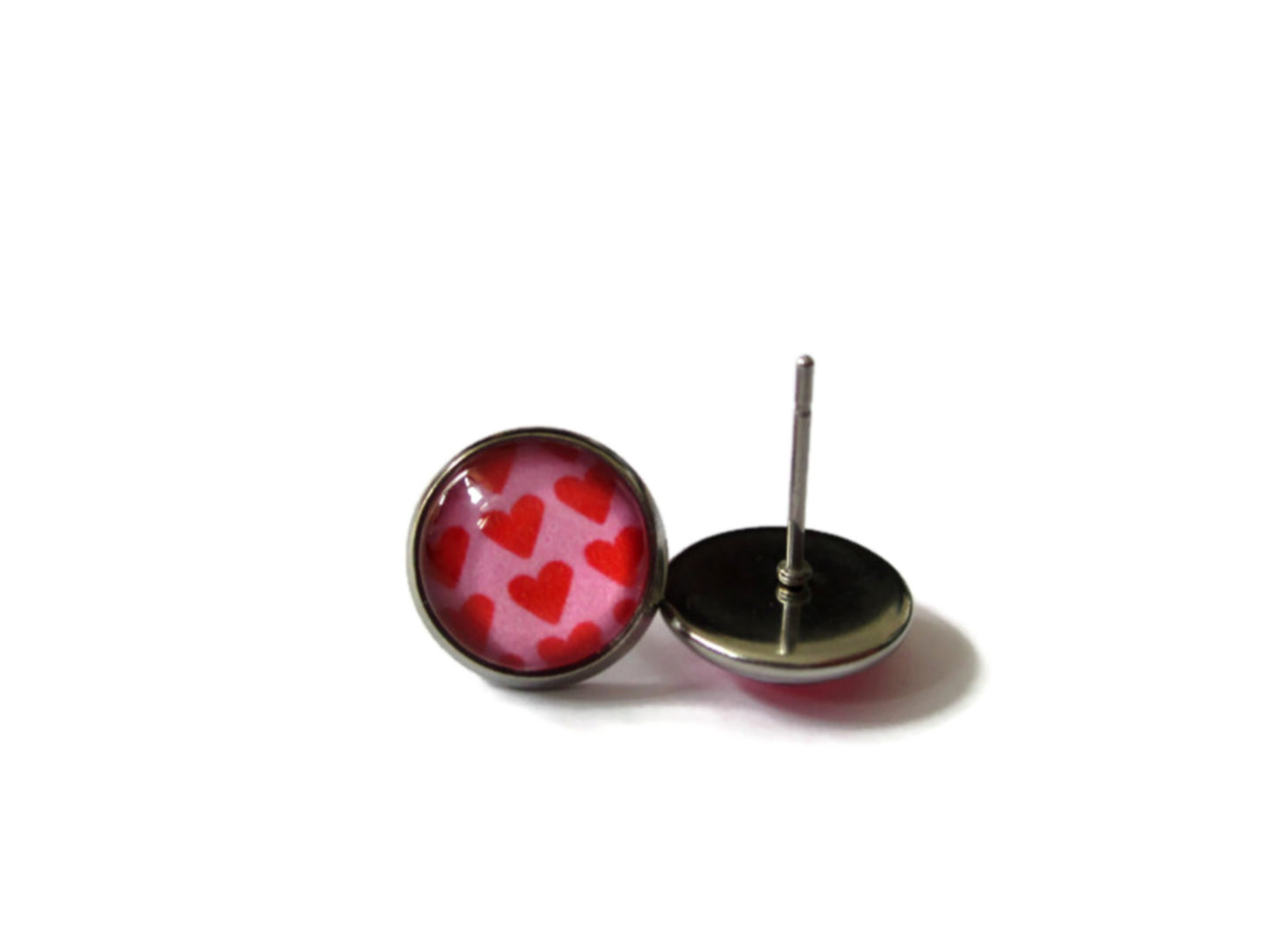 Boucles d'oreilles cœurs rouges sur petit support kraft fait maison ♥