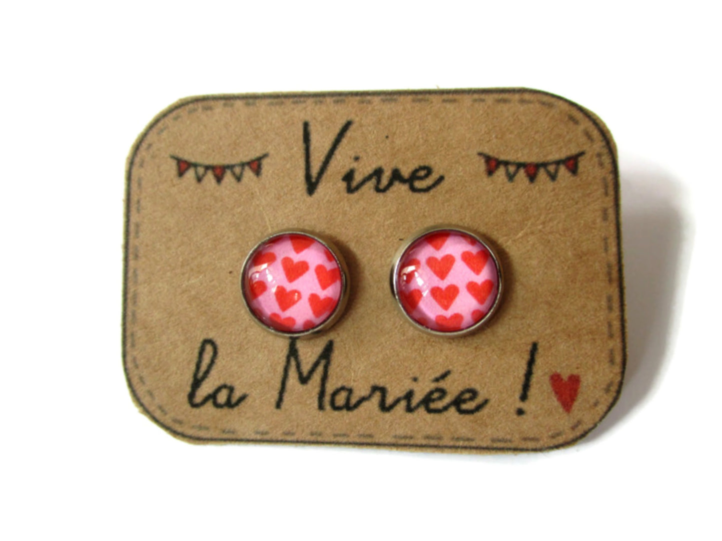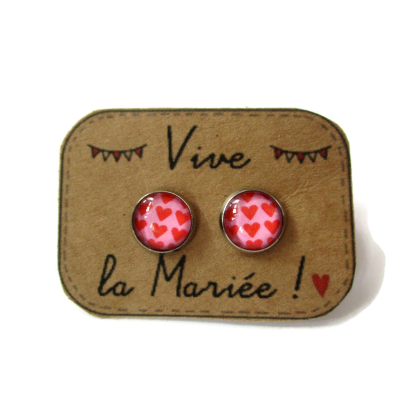 Puces d'Oreilles Coeurs Rouges / Vive la Mariée