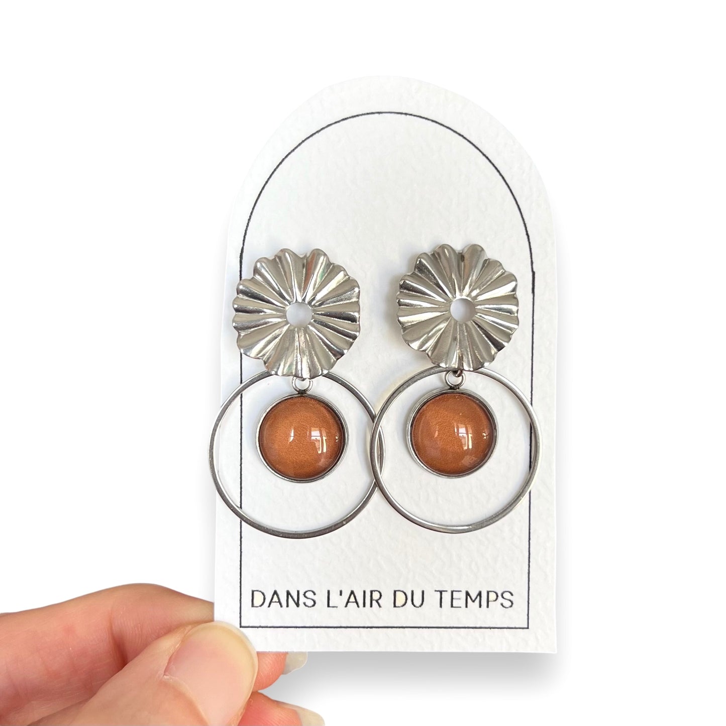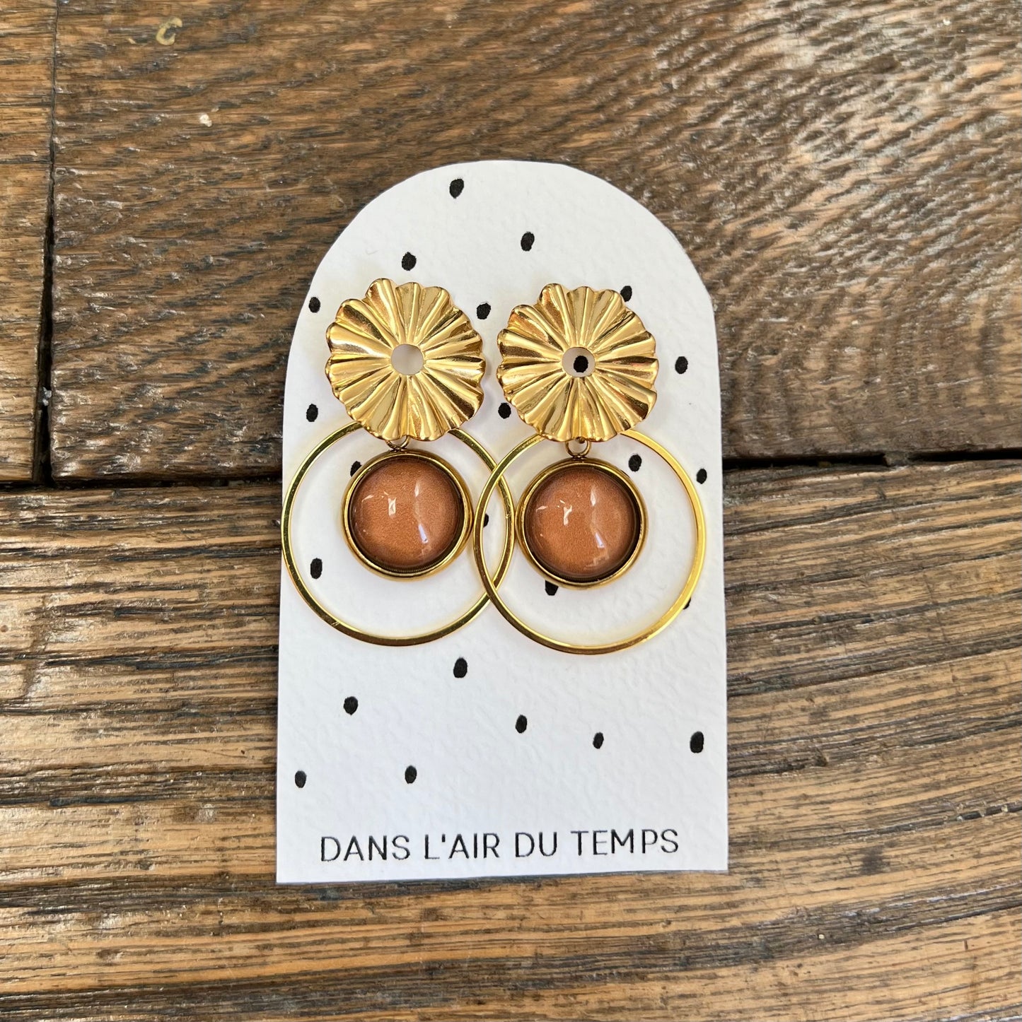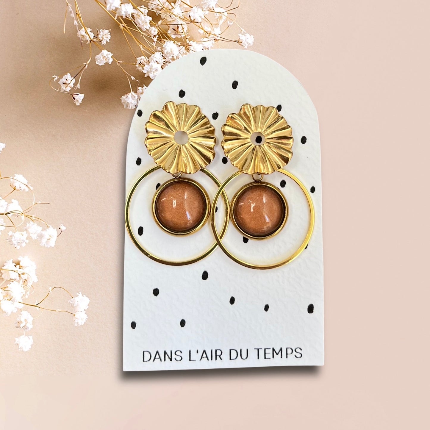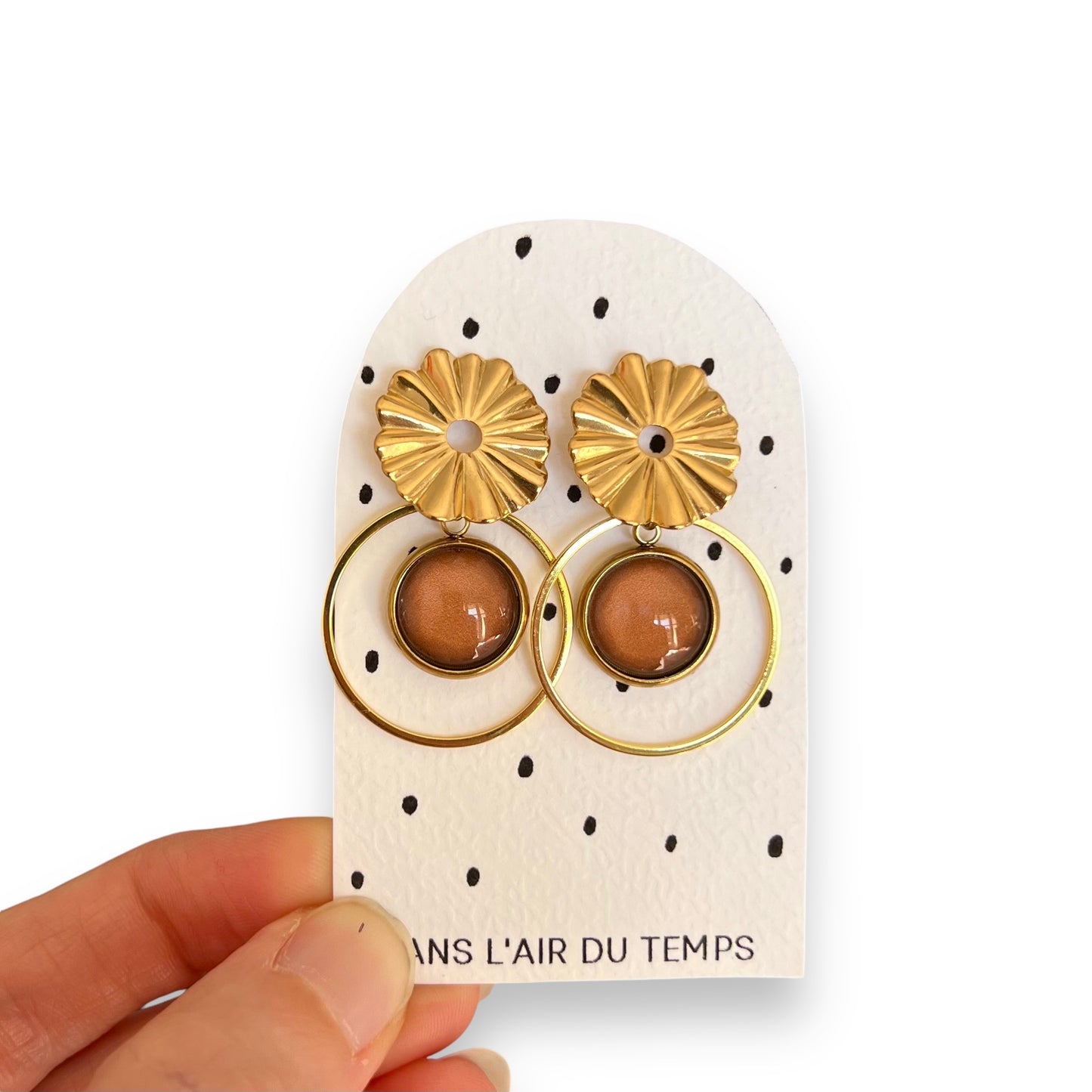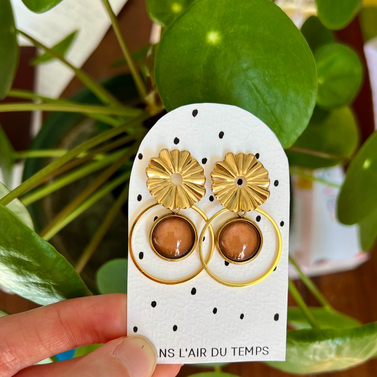 Boucles d'oreilles bohèmes camel finition dorée ou argentée