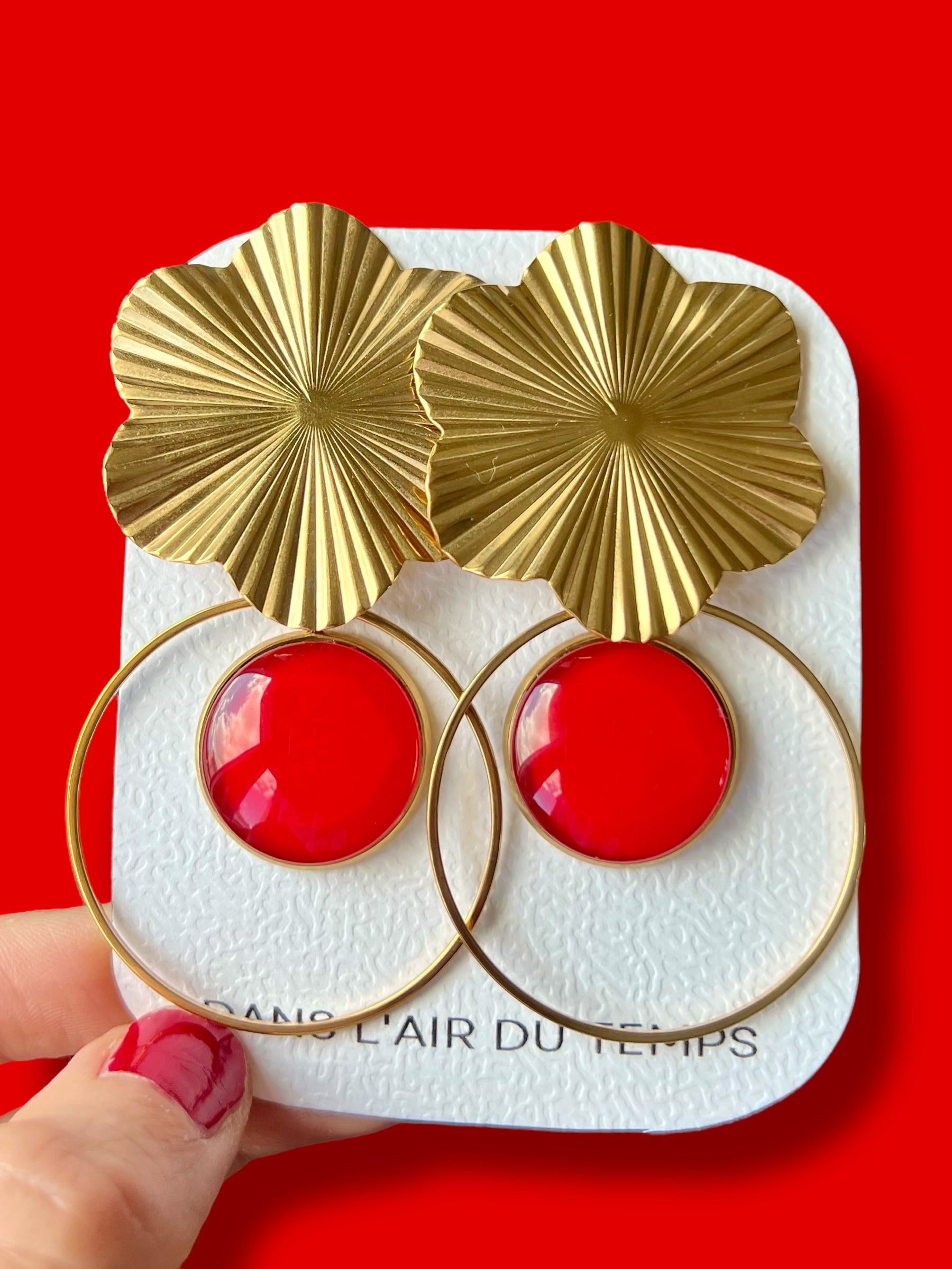 Grandes BOUCLES D'OREILLES bohèmes rouges