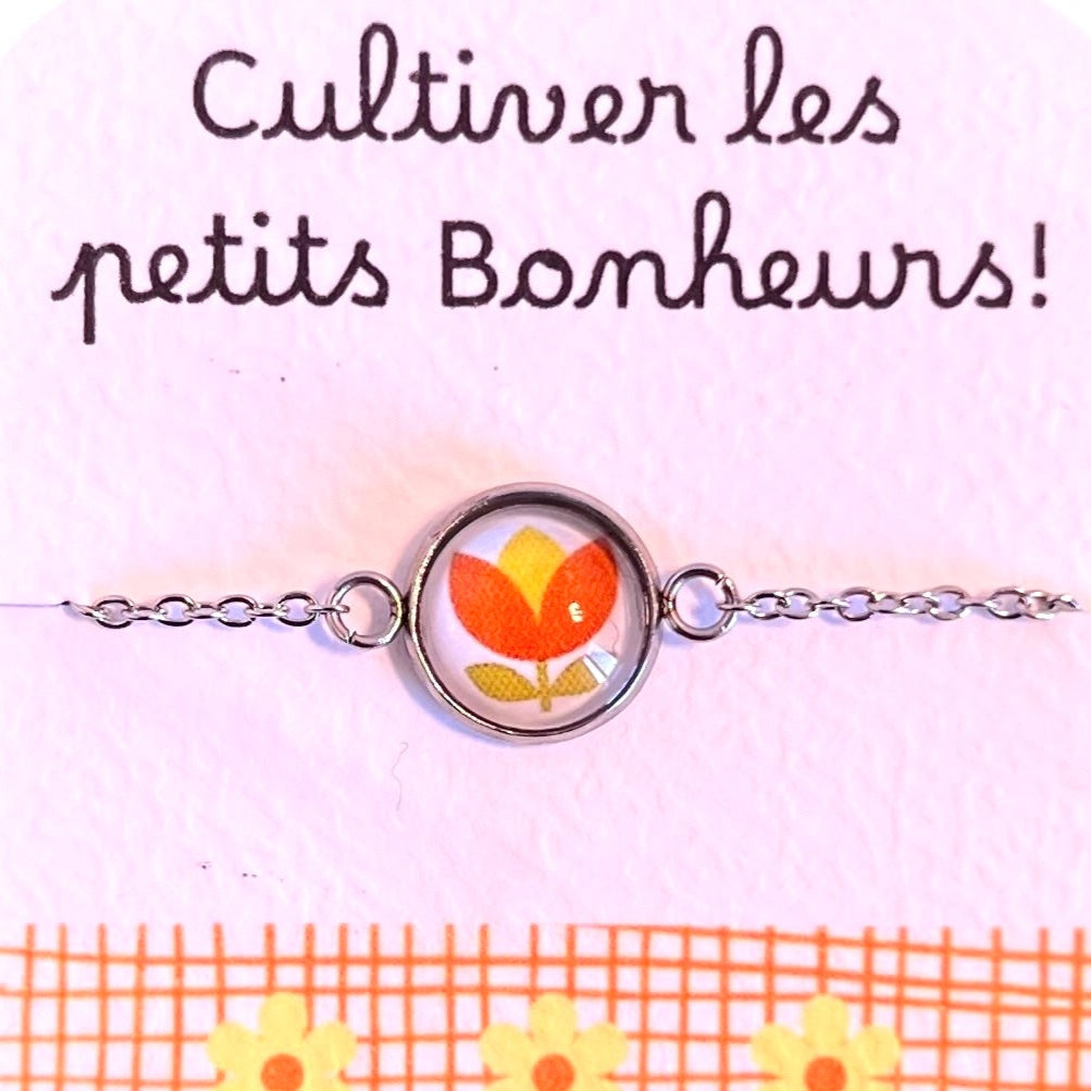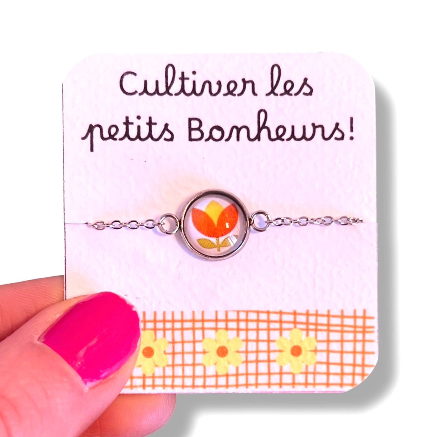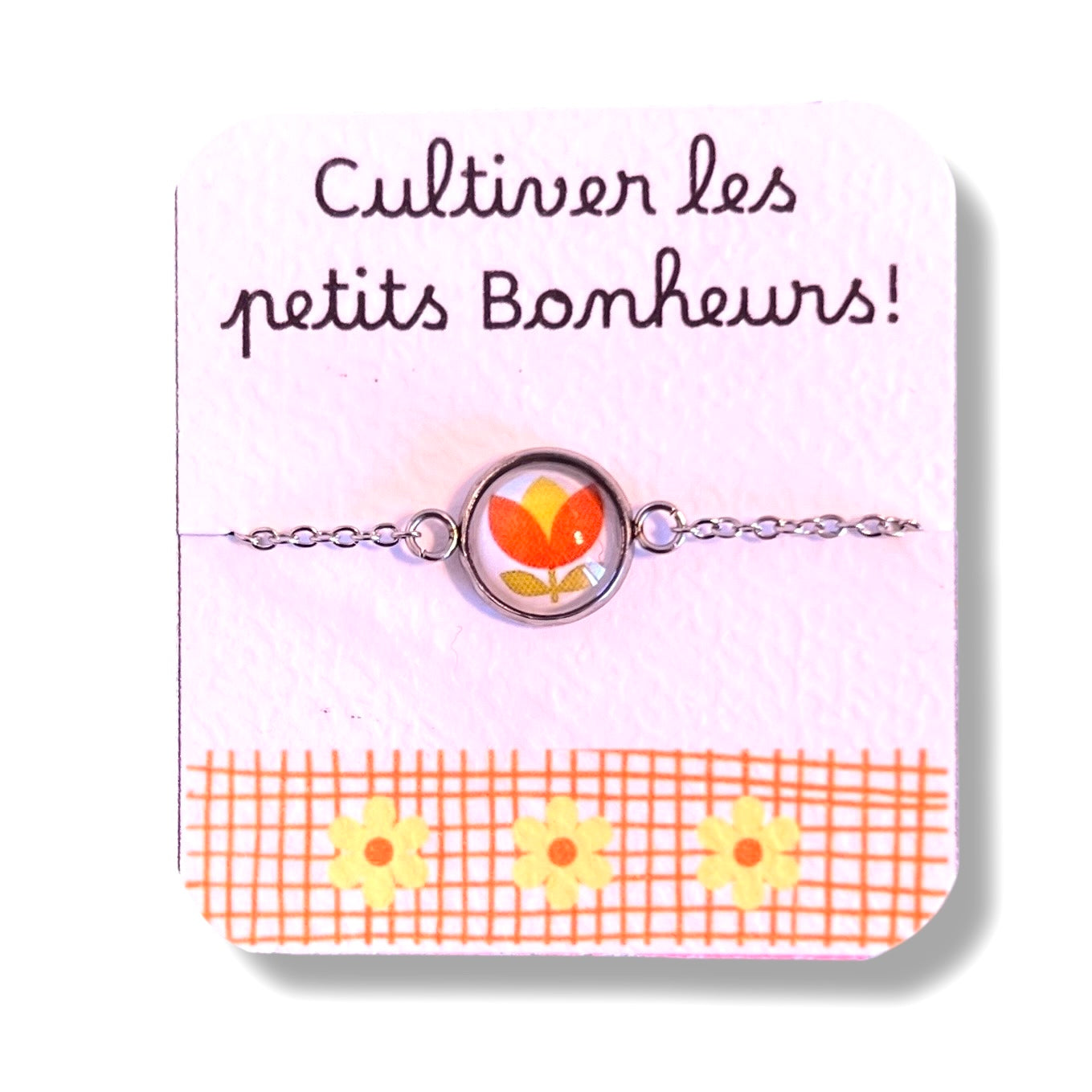 Bracelet Enfant Acier Inoxydable, fleur orange et jaune / " Cultiver les petits bonheurs! "