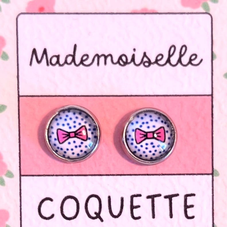 Puces d'Oreilles Enfant à Nœud Rose / Mademoiselle Coquette!