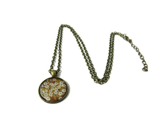 Collier Ovale Motif Fleurs Jaune Moutarde